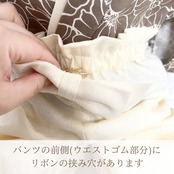 ・ウエストのゴムはお尻側のゴムの通し口から調整して頂けます。