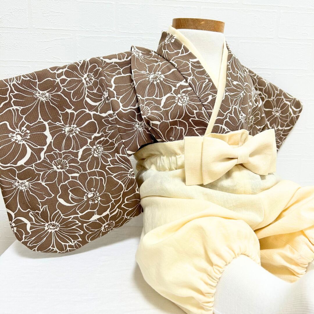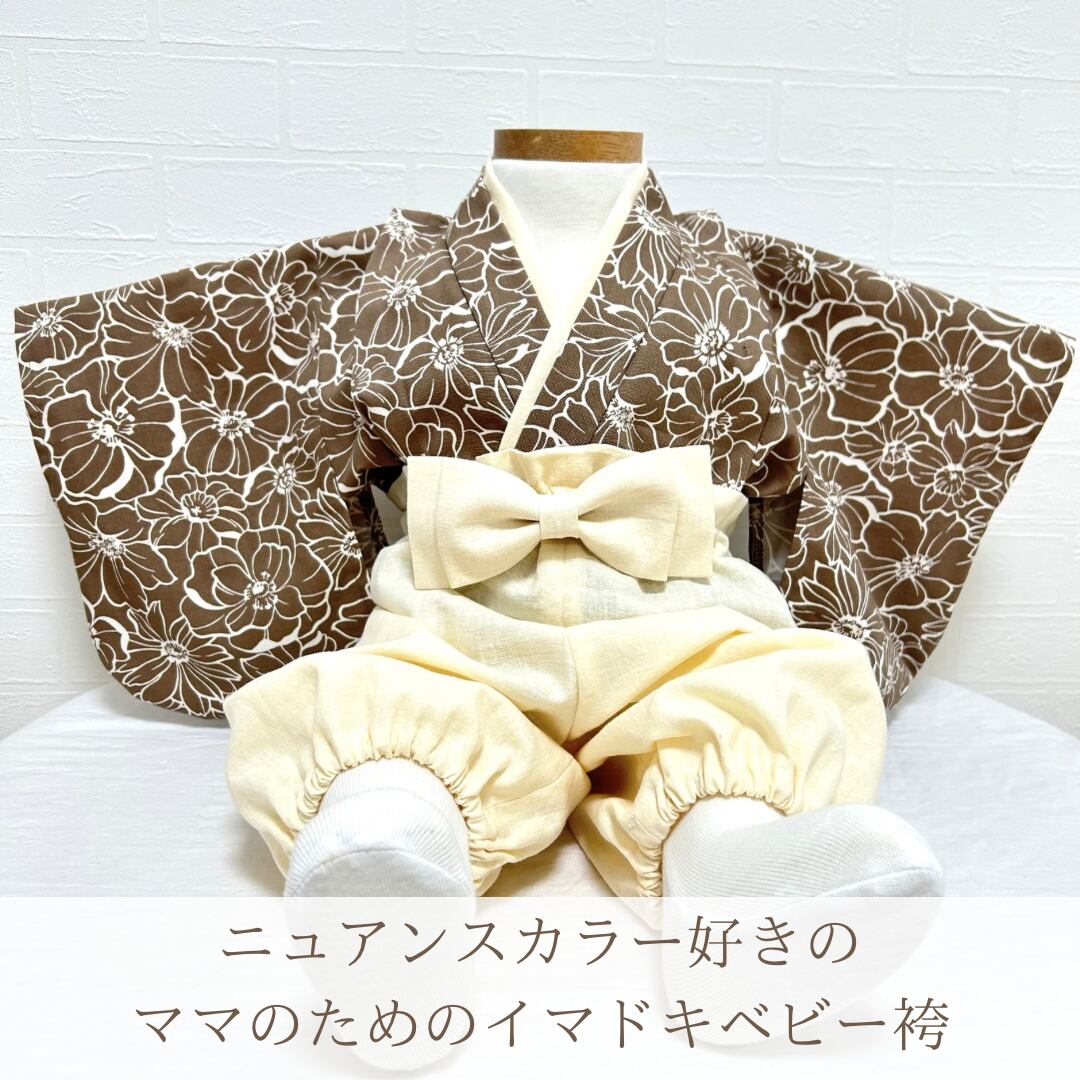 グレージュの花柄ベビー袴 初節句 お食い初め こどもの日 ひな祭り 100日祝い 出産祝い キッズ袴