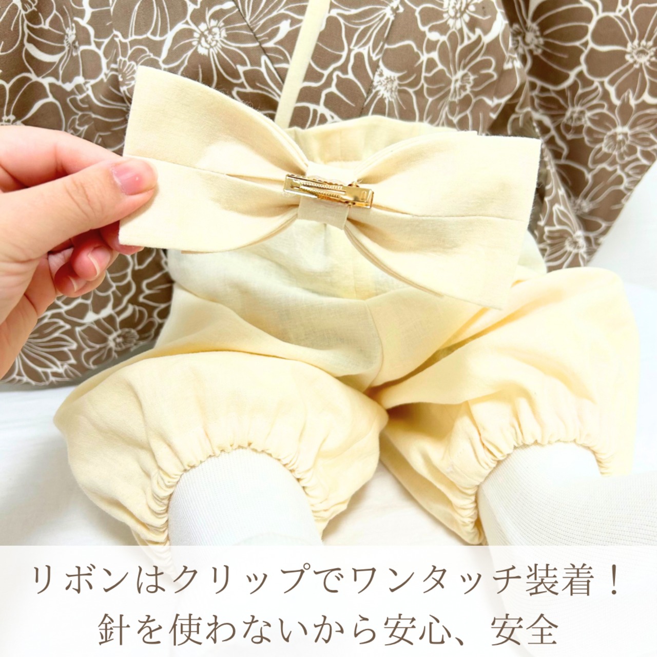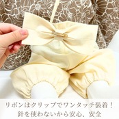 ・リボンは安全を考慮しベビー用のヘアクリップで留める仕様にしていますがお子様が指を挟んでしまわぬよう保護者様の目の届くところでご使用してください。