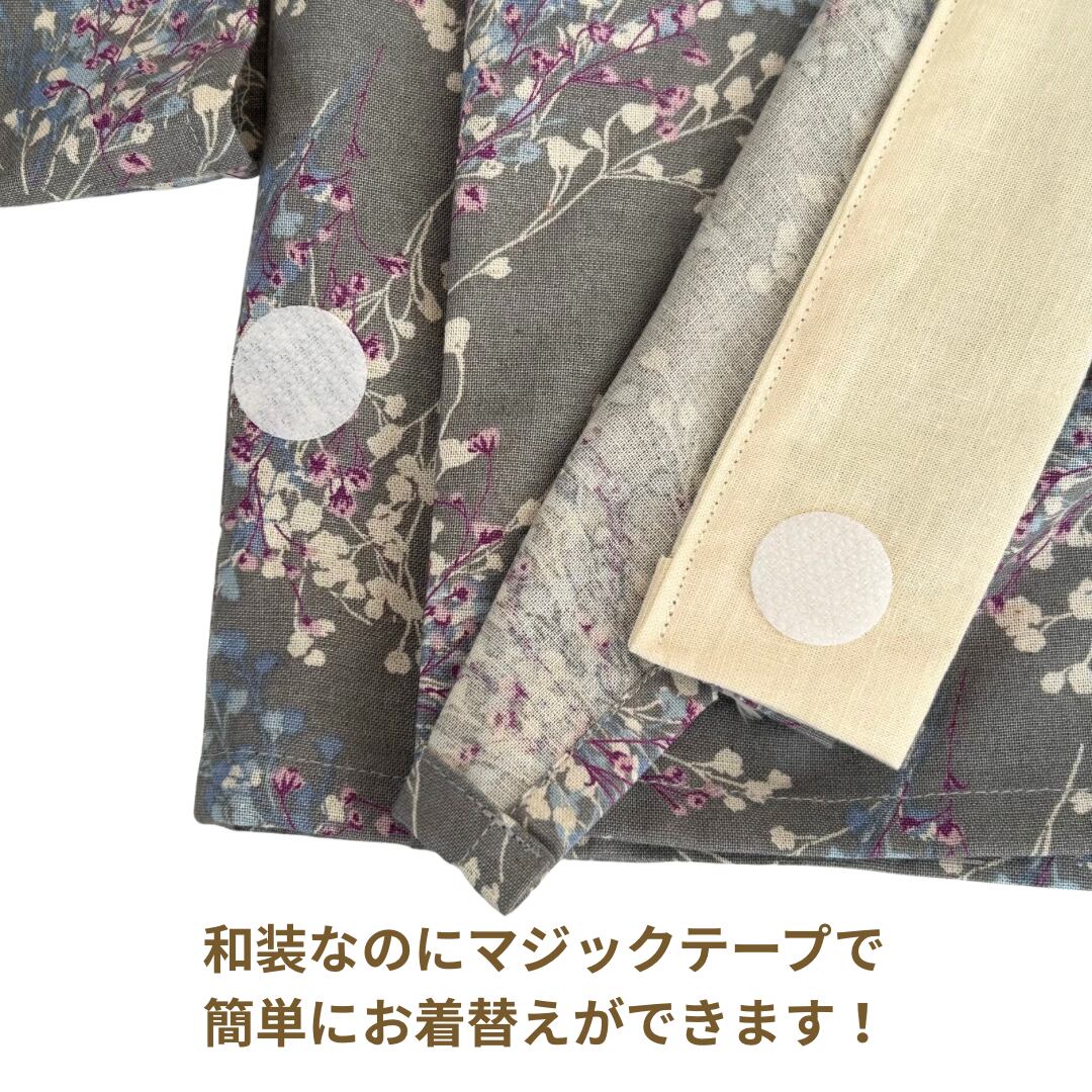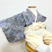 グレーのカスミソウ柄ベビー袴 初節句 お食い初め 100日祝い お正月 出産祝い 袴