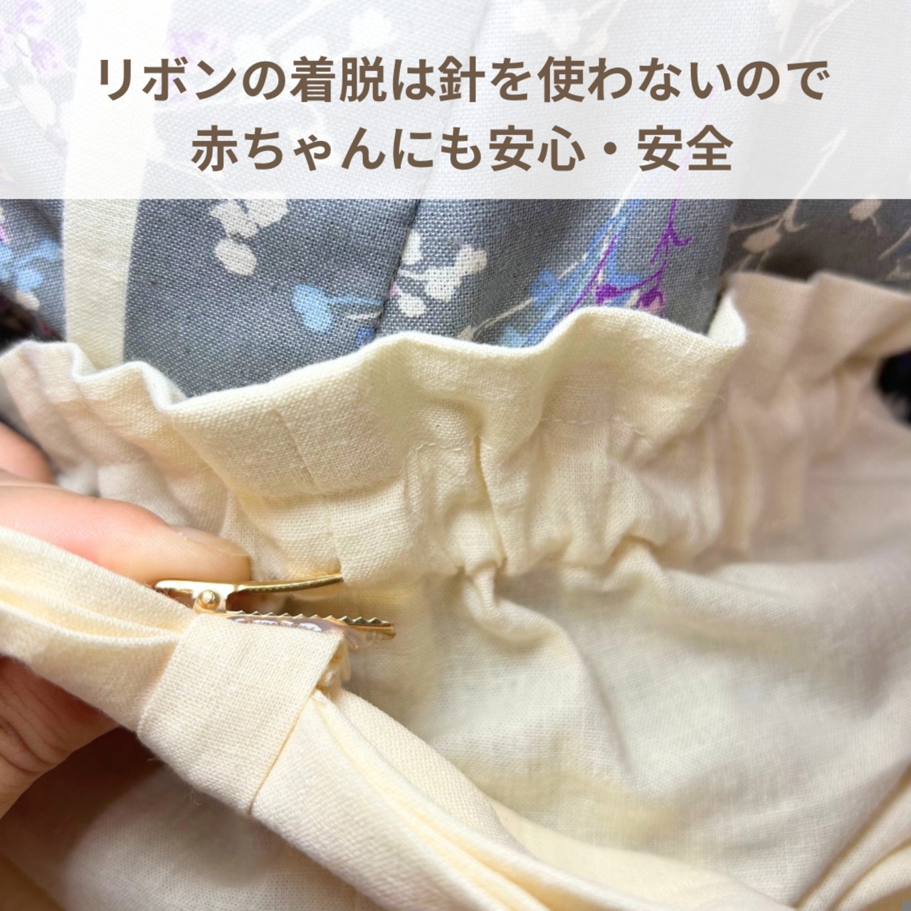 赤ちゃんがご機嫌のうちにパパッと着替えて記念撮影やお祝いが行えるようにワンタッチで着脱ができるつくりになっています。