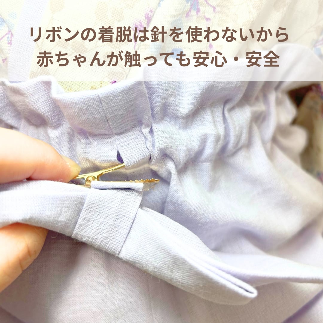 ・リボンは安全を考慮しベビー用のヘアクリップで留める仕様にしていますがお子様が指を挟んでしまわぬよう保護者様の目の届くところでご使用してください。