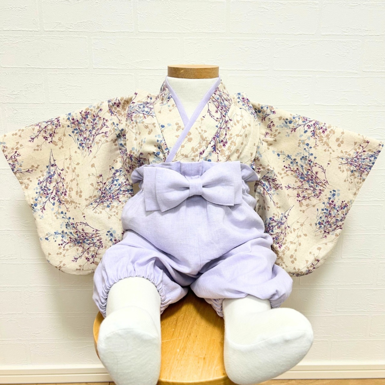 キナリのカスミソウ柄ベビー袴 初節句 お食い初め 100日祝い 出産祝い 和装 袴 お正月