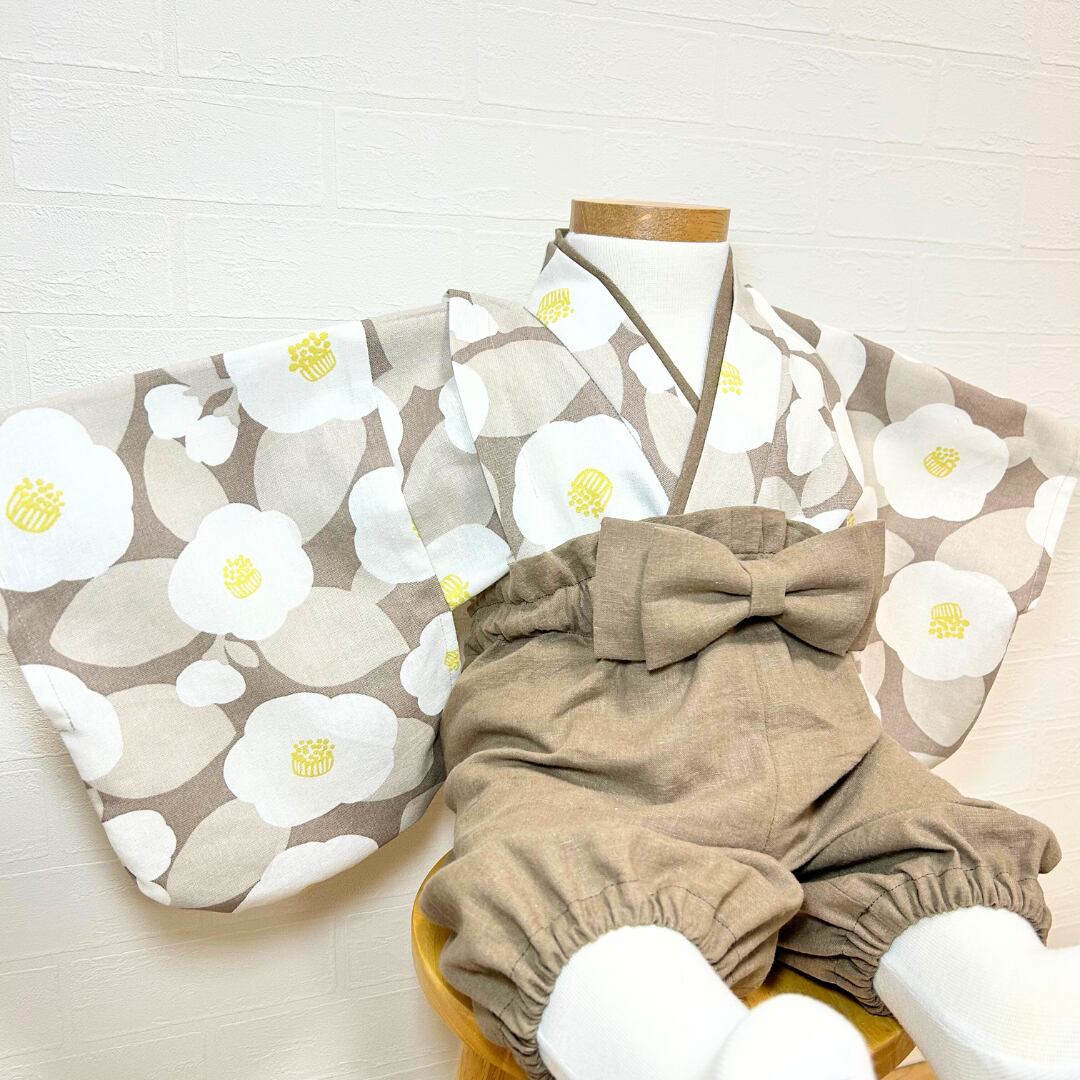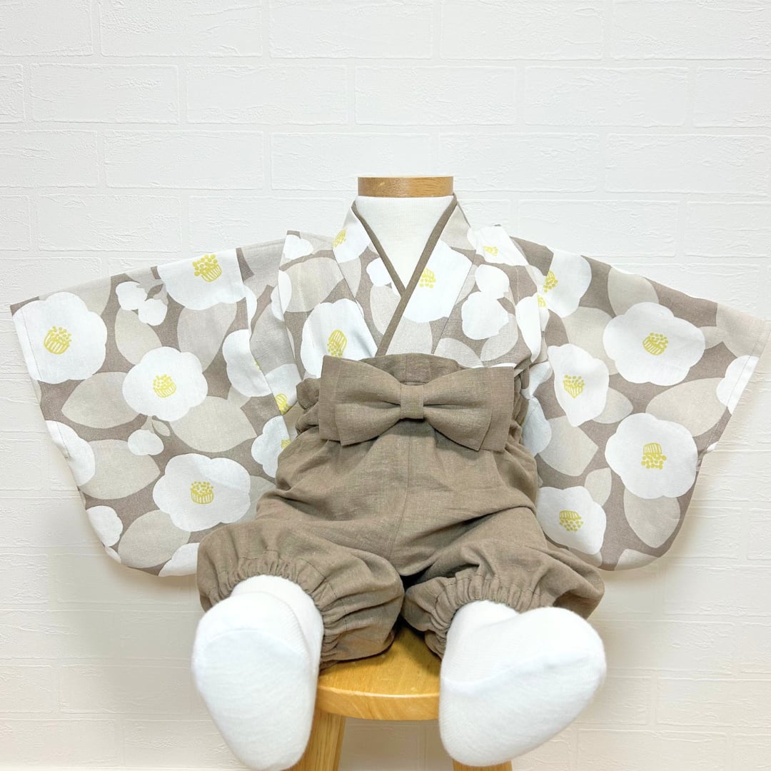 モダン椿(ベージュ) お食い初め 初節句 100日祝い お正月 出産祝い ベビー袴 キッズ袴