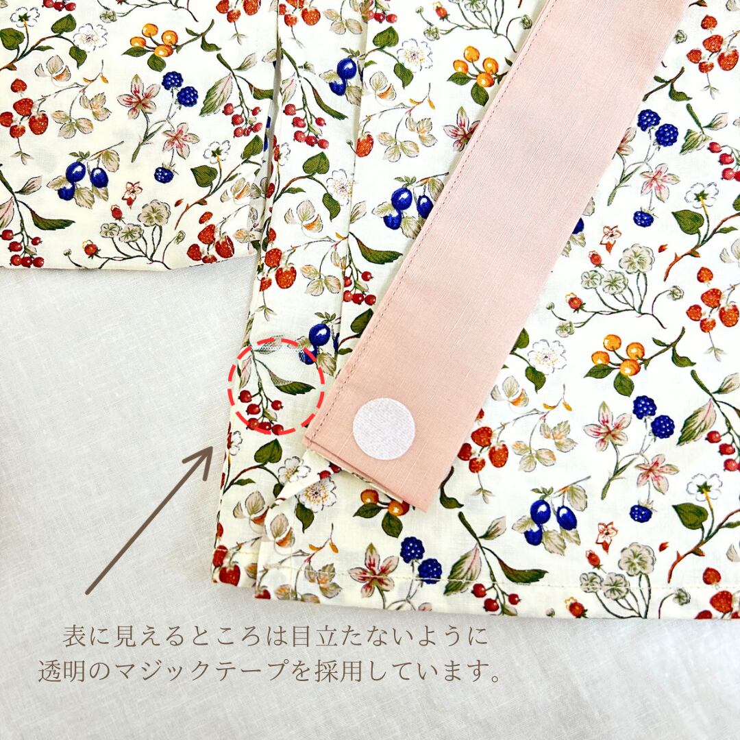 赤ちゃんがご機嫌のうちにパパッと着替えて記念撮影やお祝いが行えるようにワンタッチで着脱ができるつくりになっています。