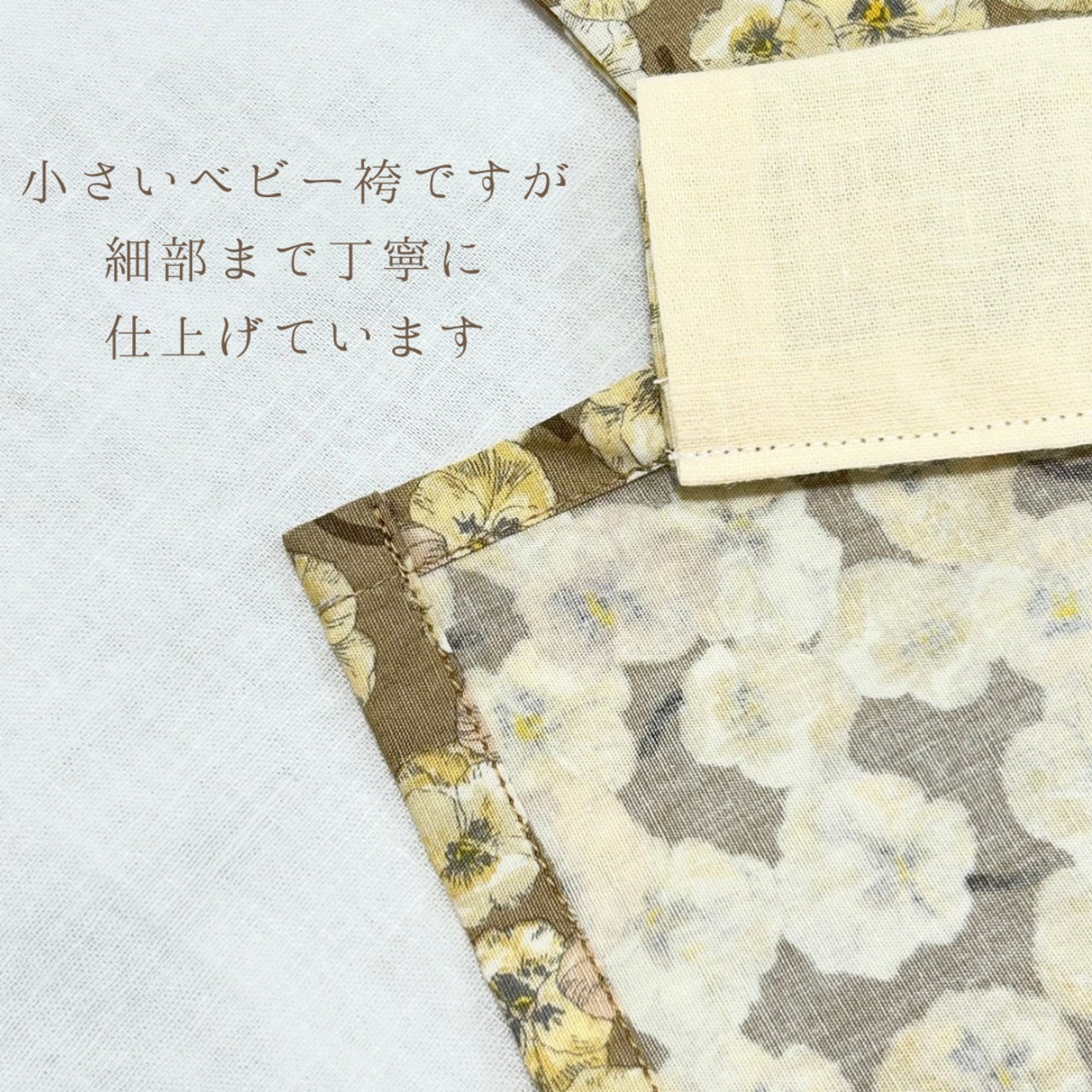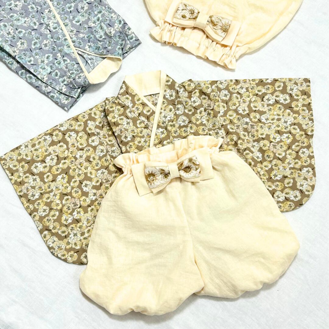 ベージュのパンジー柄ベビー袴 初節句 お食い初め 100日祝い ひな祭り こどもの日 花柄 出産祝い