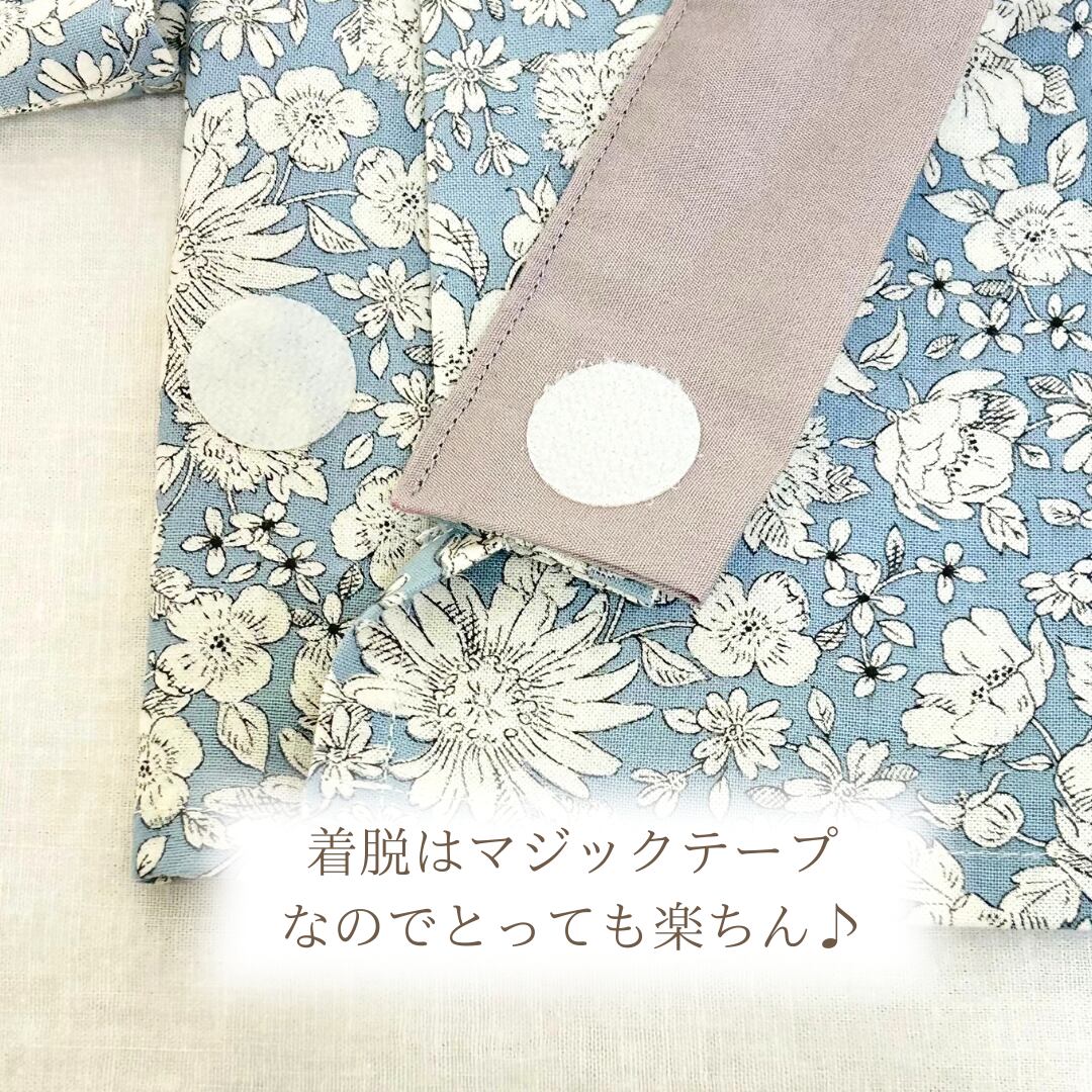 赤ちゃんがご機嫌のうちにパパッ1分で着替えて記念撮影やお祝いが行えるようにワンタッチで着脱ができるつくりになっています。
