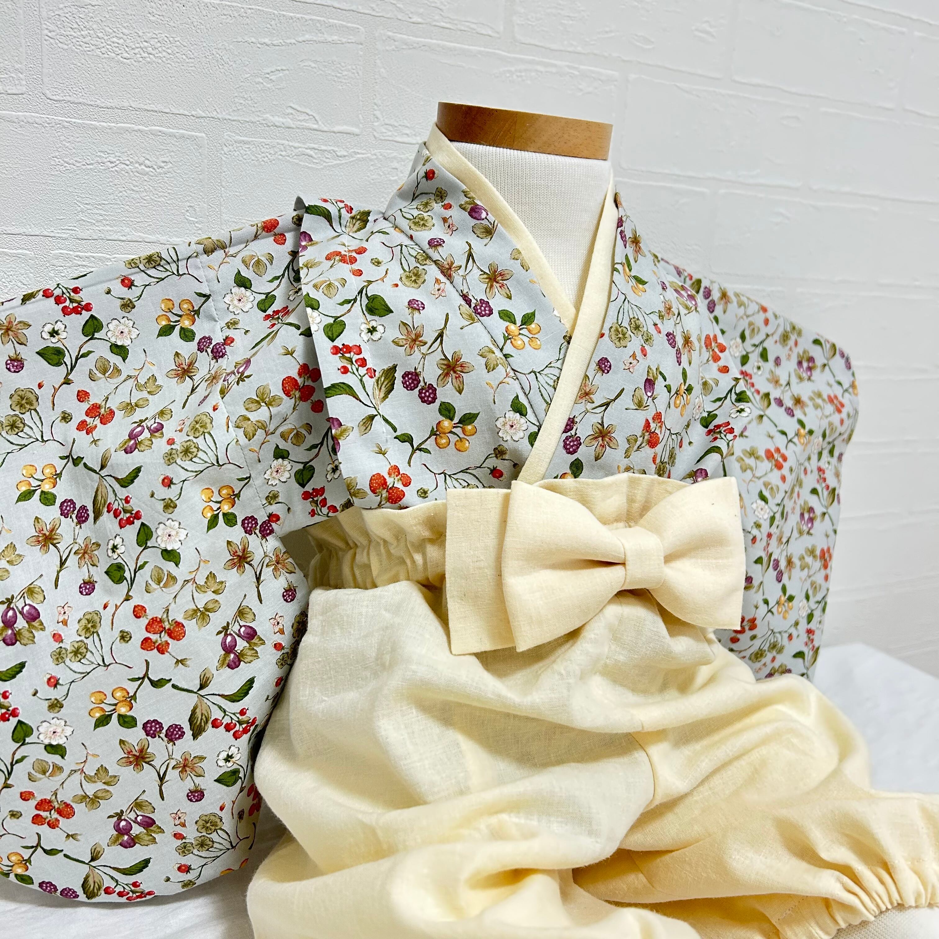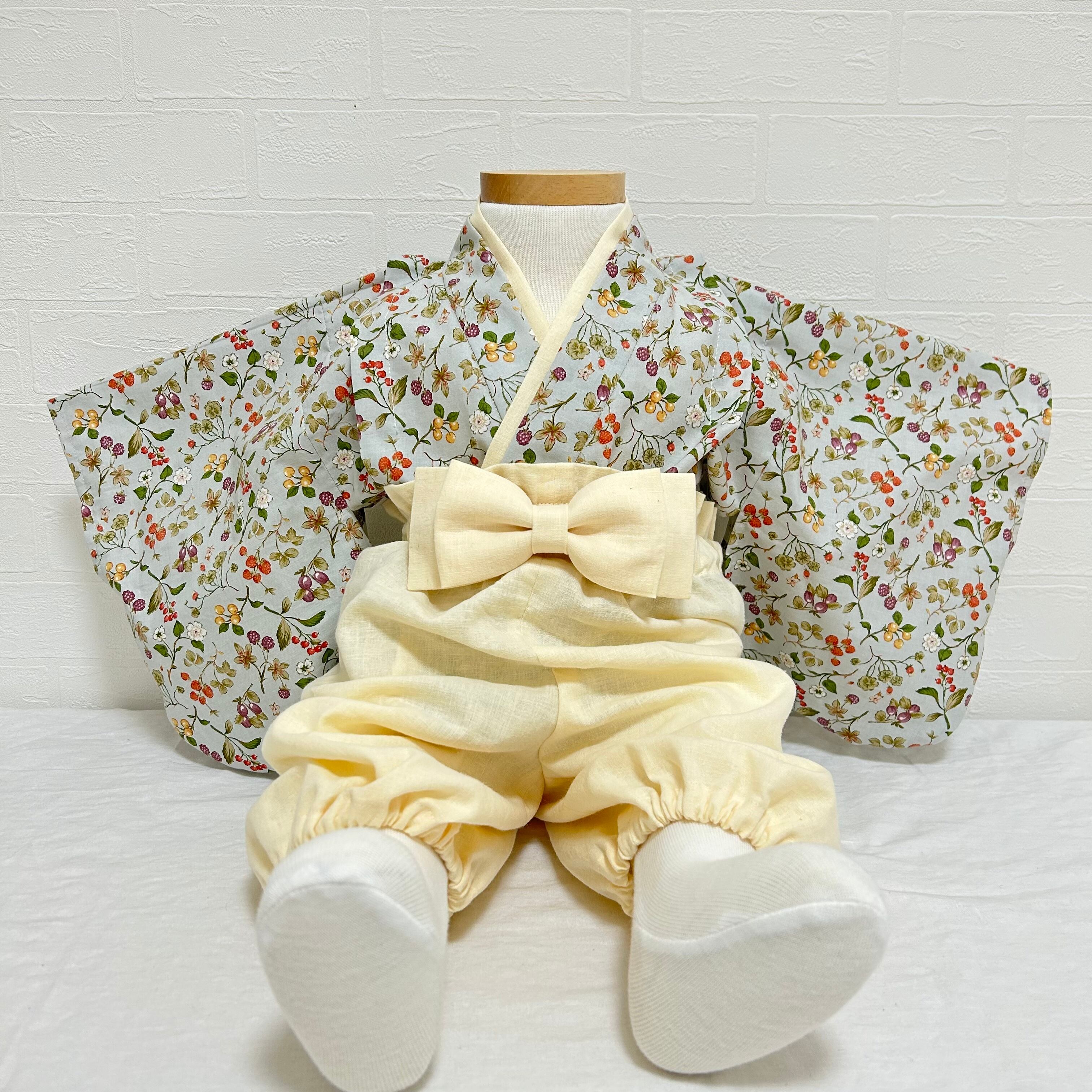 ベリー柄ミストブルーのベビー袴 初節句こどもの日お食い初め100日祝い出産祝い