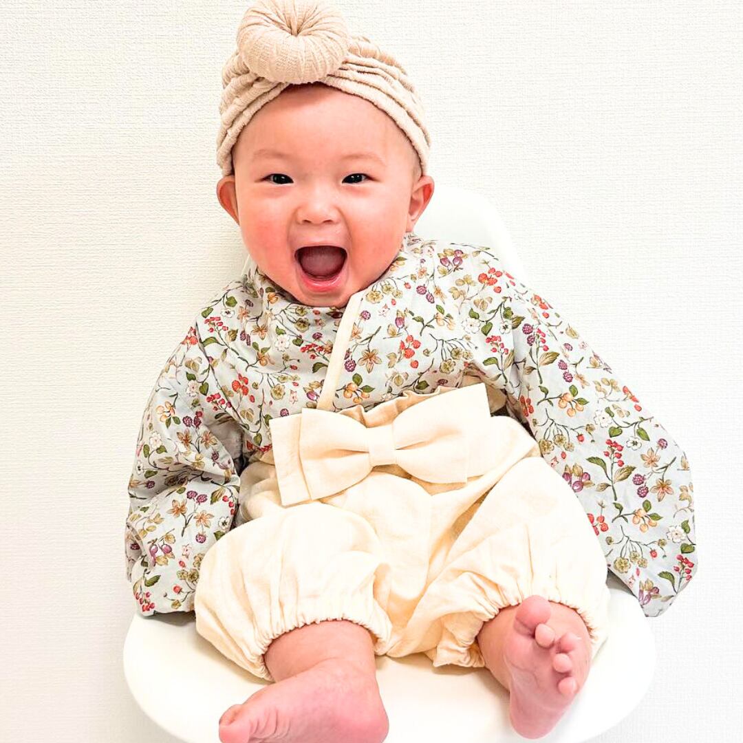 息子のときは、3ヶ月で寝返りをマスター。お食い初めの日、手作りのベビー袴に着替えさせようとしてもコロコロ動き回ってなかなか着替えが進まず、なんだか日々の疲労もありぐったりでした。