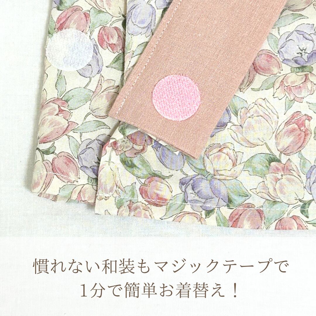 赤ちゃんがご機嫌のうちにパパッと着替えて記念撮影やお祝いが行えるようにワンタッチで着脱ができるつくりになっています。