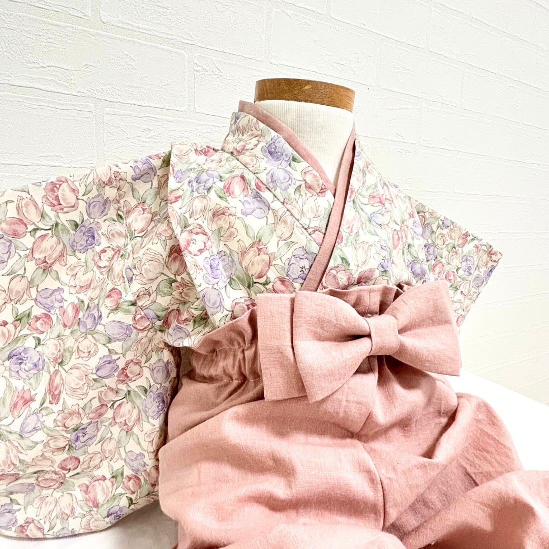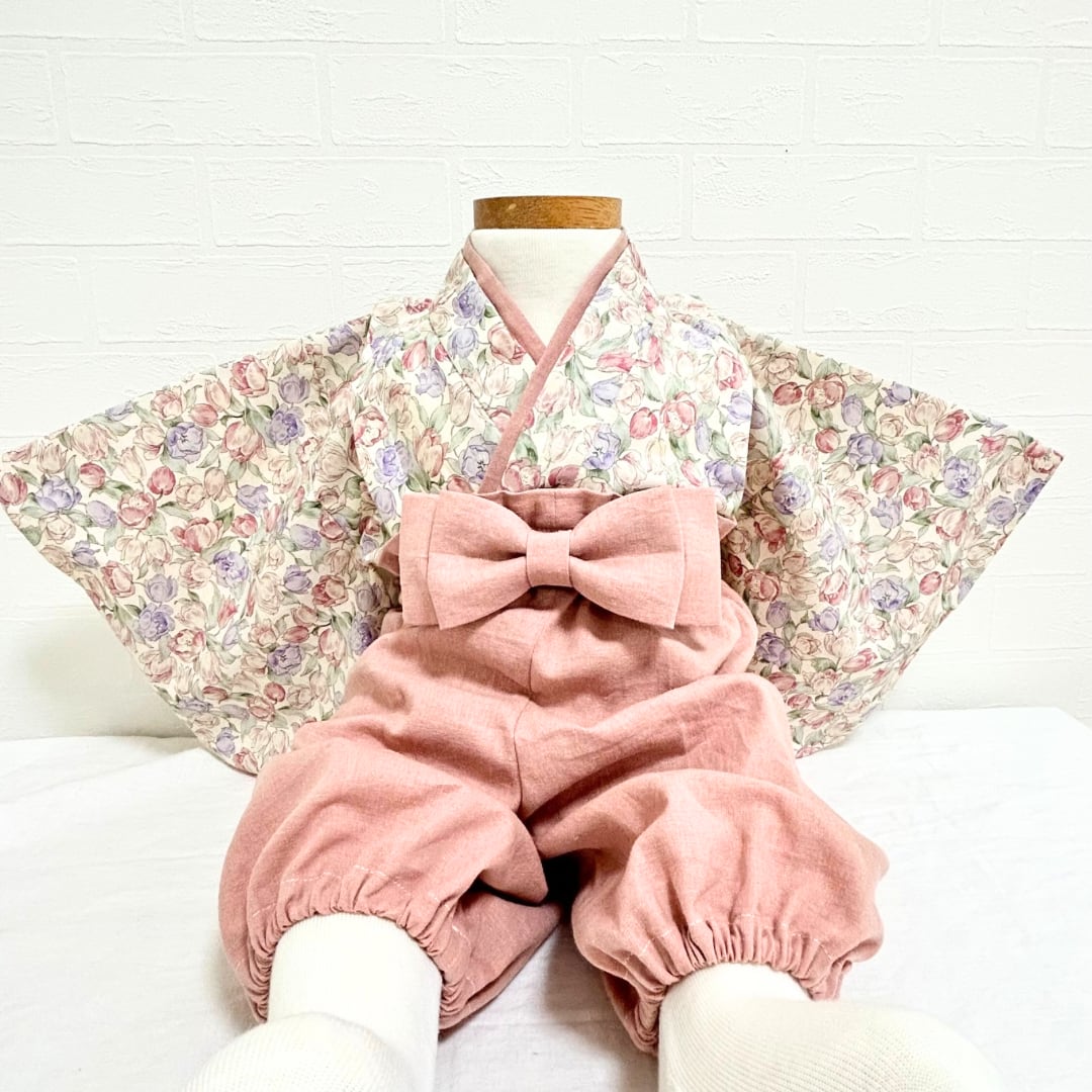 マリエッタピンクのベビー袴 お食い初め 100日祝い 初節句 出産祝い ベビー袴 キッズ袴 チューリップ ピンク