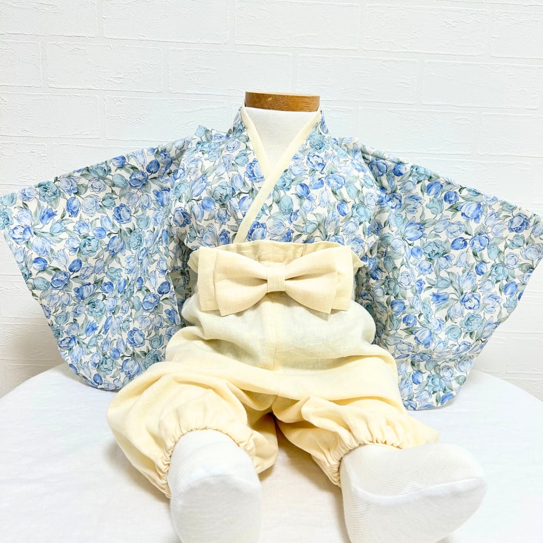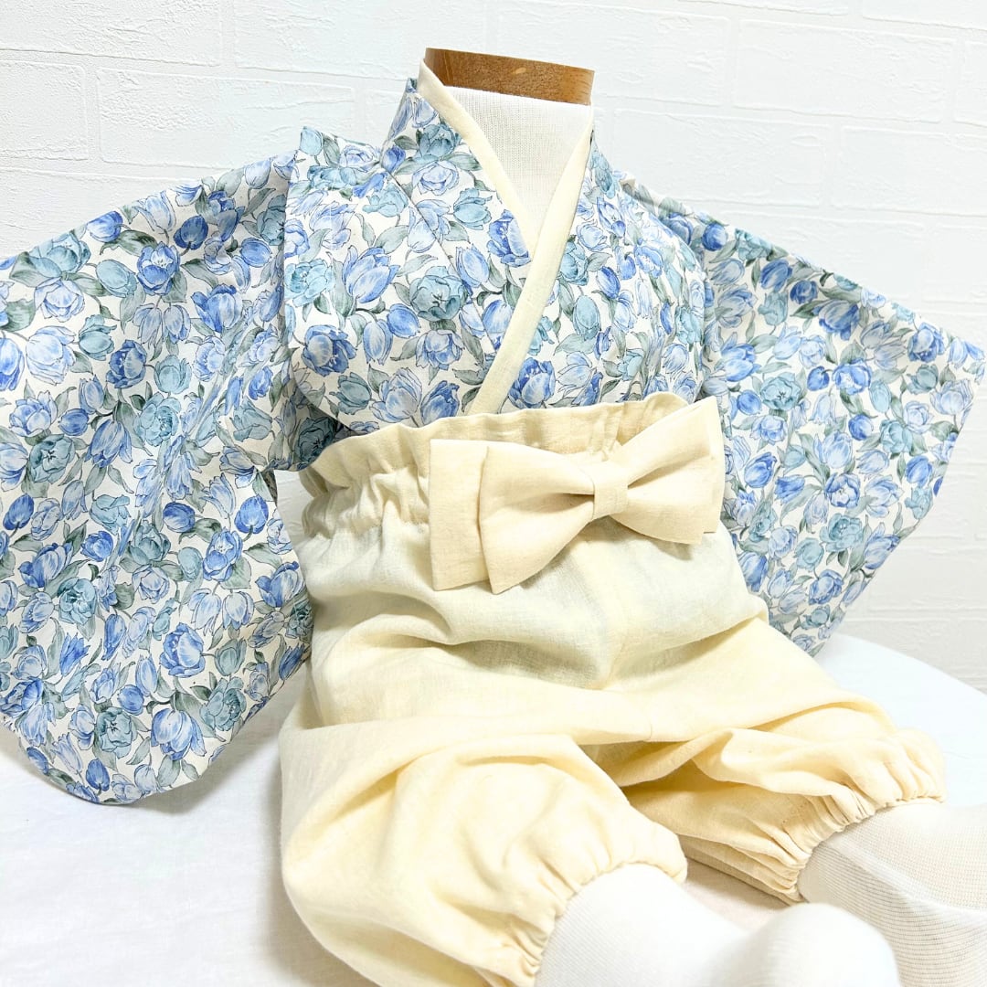 マリエッタブルーのベビー袴 お食い初め 100日祝い 初節句 出産祝い ベビー袴 キッズ袴 チューリップ ブルー 青